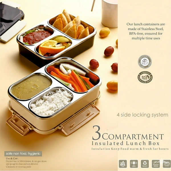 Stainless Steel Lunch Box with 3 Compartments – Your Perfect Mealtime Companion