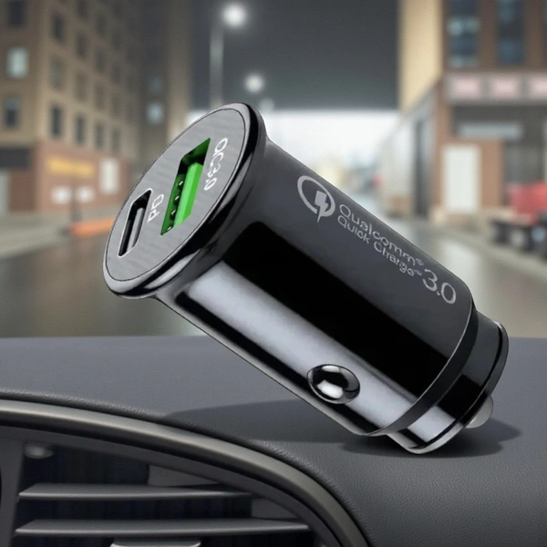 PD & QC 3.0 Dual Port Design – Charge your I Phone, Android, tablet, or other gadgets at optimal speed with intelligent power distribution between Type-C and USB ports. Universal Compatibility – Works seamlessly with all major devices Smart & Safe Charging – Built-in smart chip protects your devices against overheating, overcharging, overcurrent, and short circuits for safe and reliable use. Compact & Durable Build – Sleek aluminum alloy body fits flush with your car’s dashboard socket, offering a premium look and long-lasting performance even on bumpy roads. Ultra Charging Protection Protects from Short Circuit, Over-Temperature Over-Voltage, Over-Current